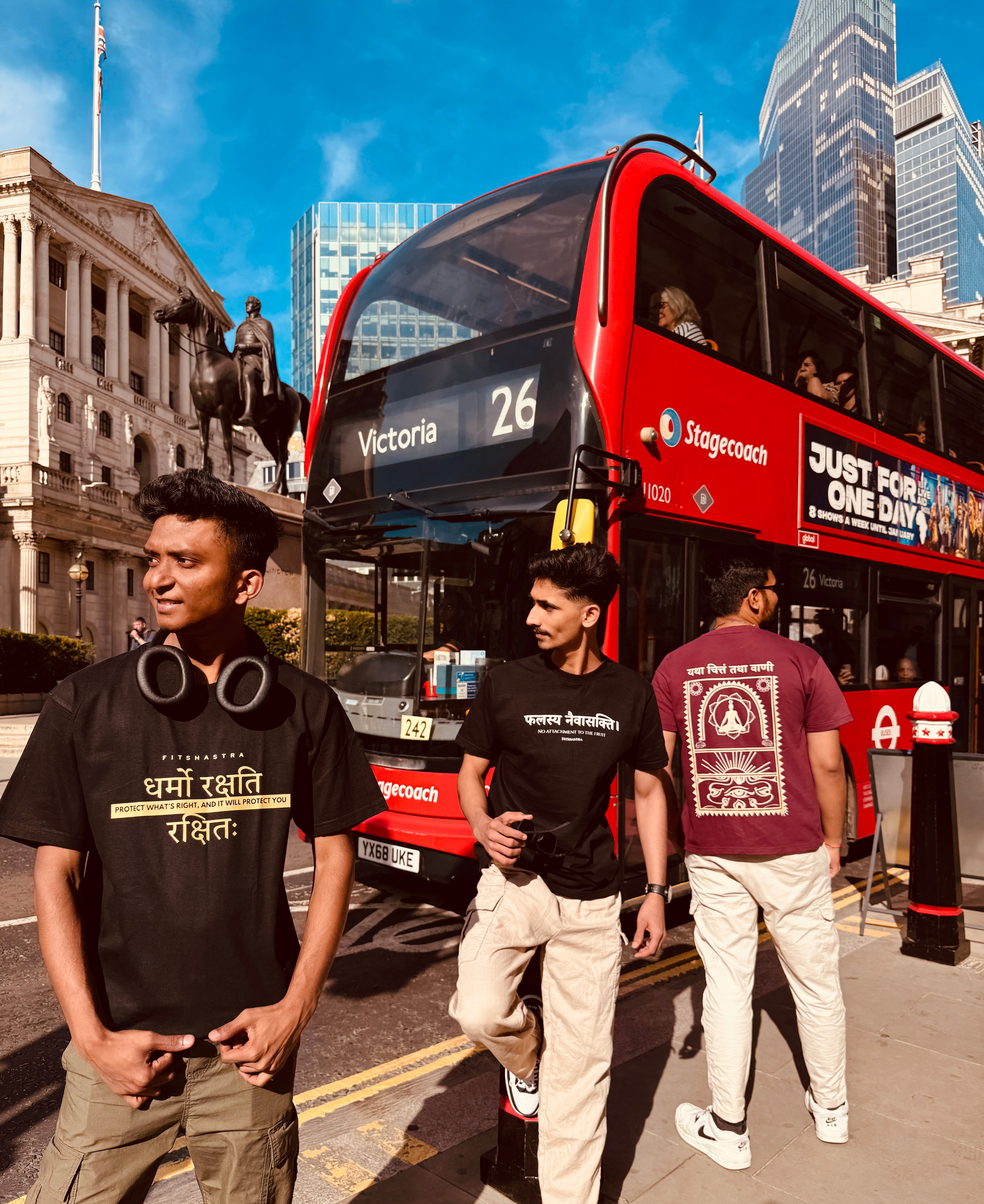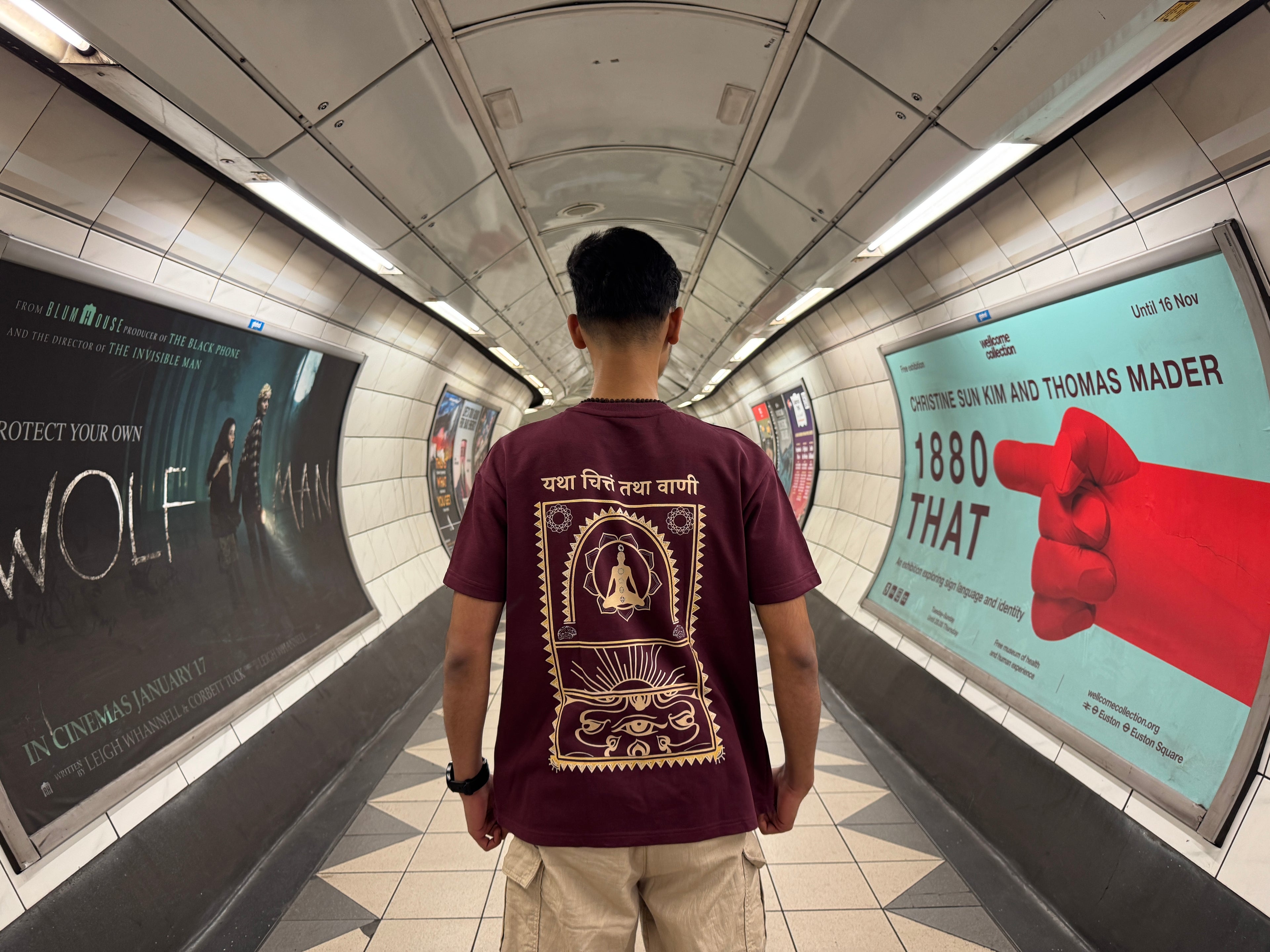 We draw inspiration from Hindu shastra and dharmic values. Out of respect, we do not use deity photos or vedic mantras. Each design carries symbolic meaning, culture, and thought, styled for modern streetwear.
